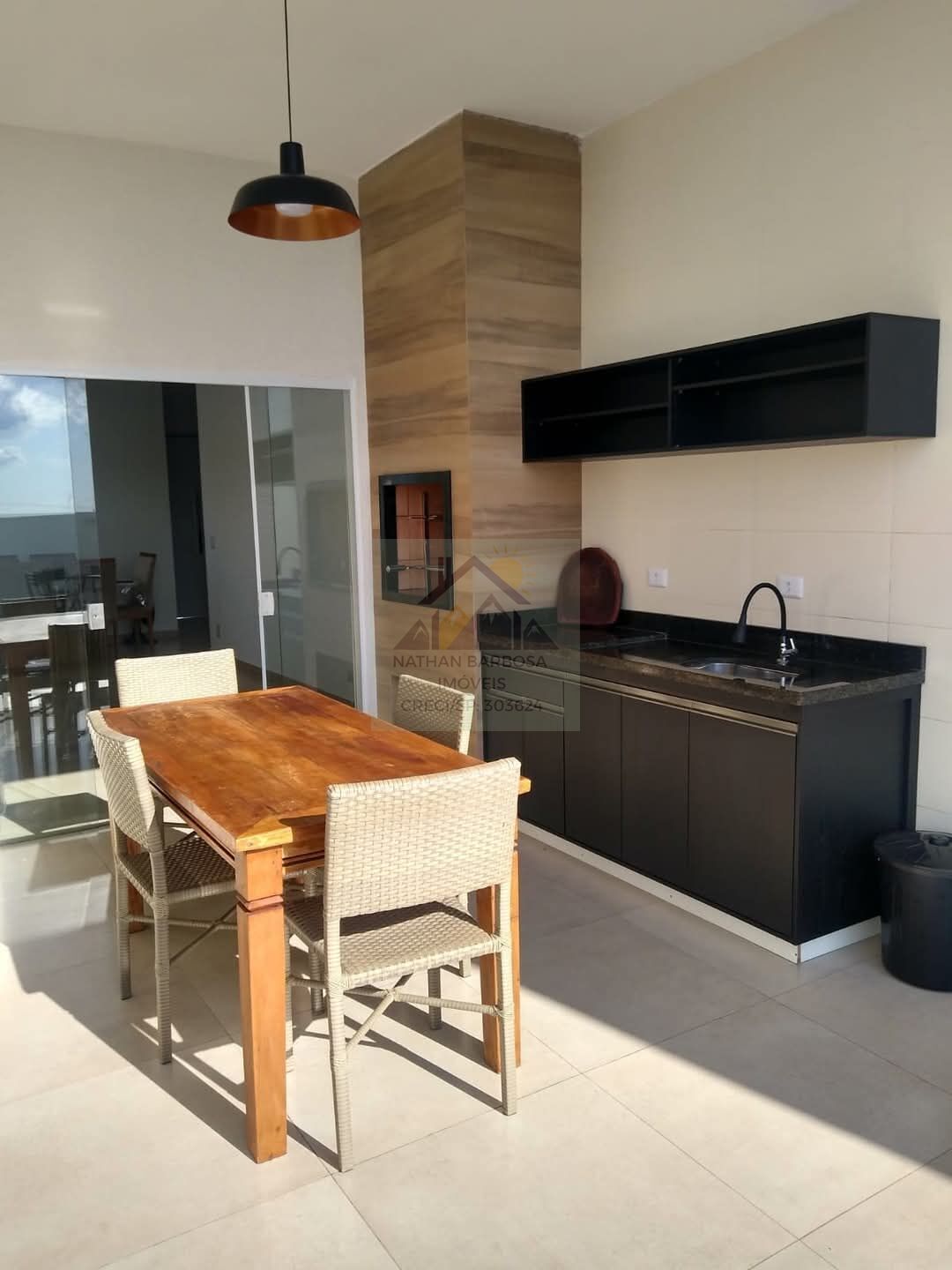 O charme da casa está no living com pé-direito alto, que valoriza a iluminação natural e transmite uma sensação única de amplitude. Integrados à área social, a sala de jantar e a cozinha funcional criam o cenário perfeito para momentos inesquecíveis em família ou com amigos.